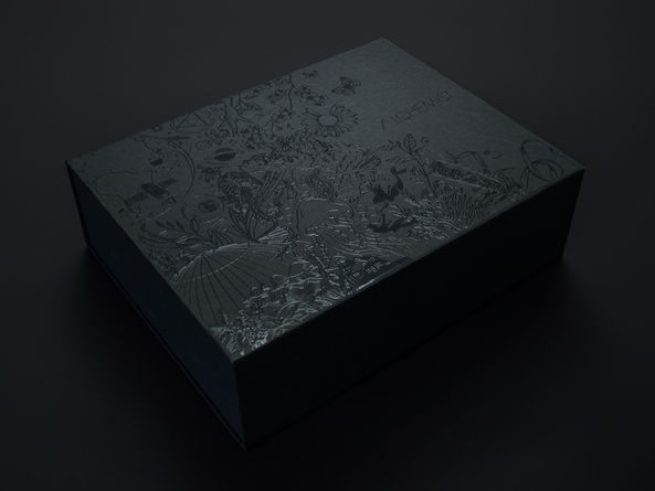The box, fully illustrated by me, captures the entire universe of the restaurant — from its signature dishes and behind-the-scenes moments to its stories, ideas, and the essence of Alchemist itself. Finished with a sleek vinyl gloss, the box maintains a black, understated tone, inviting a more immersive and tactile experience.